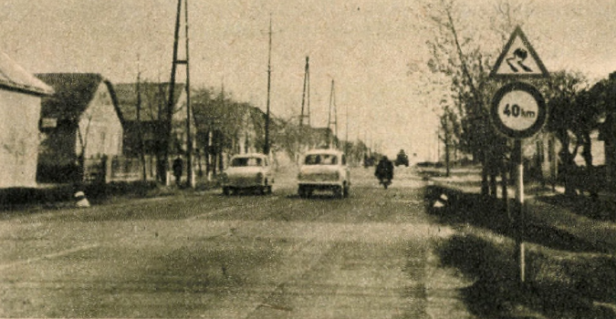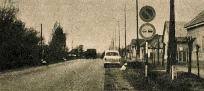 A felfestett két forgalmi irányt elválasztó fehér vonalnak szinte bűvös hatása van. Sem oda, sem vissza jövet nem láttunk egyetlen egy j[á]rámüvet sem, mely átlépte volna a fehér vonal által megszabott határt. Pedig azelőtt ezen a vonalon éppúgy jártak a szekerek a jobboldalon vagy a közé­pen, mint ma is járnak mindenütt másutt. Reméljük, hogy a fehér vonalat a kopás után ismét felfestik, hogy legalább ezen az útszakaszon tanuljanak rendet a lófogatú kocsik.