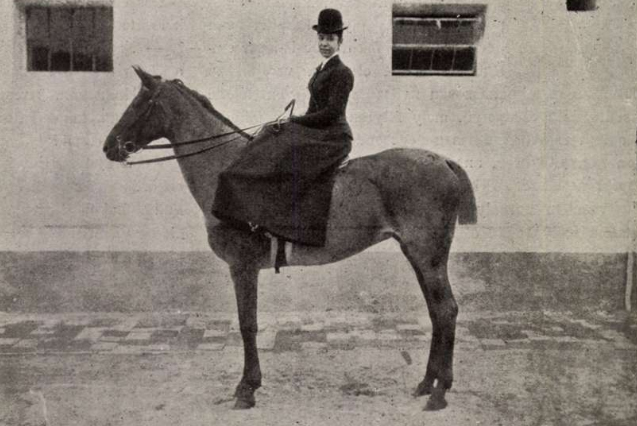 Miss Jessy Huxtable lóháton.
