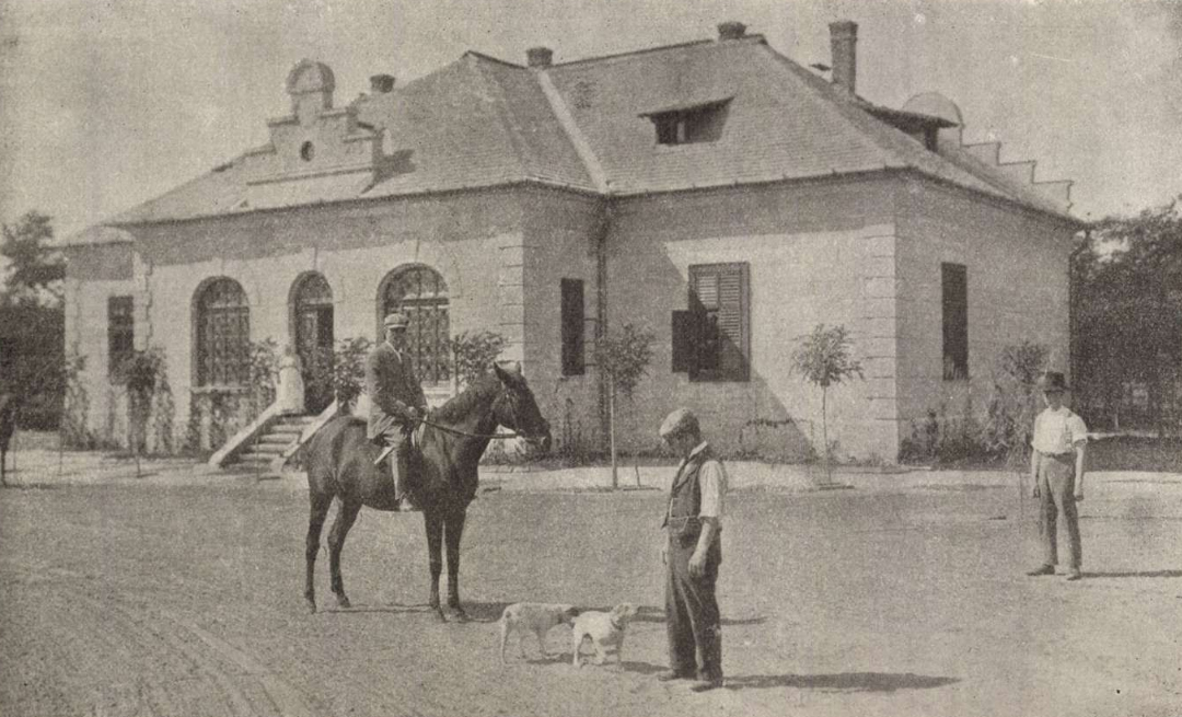 Innen elmentünk a majorsági épületbe, a hol az újonnan fogadott Jones Geoghegan mester istállója van ideiglenesen elhelyezve, a mig a Jankovich-Bésán Gyula által a lovaregylettől részére kibérelt területen lakóháza és istállói elkészülnek. St. Patrik, Mary Agnes és Slippe lovait állitotta a gép elé és mi itt lekaptuk azt a kocsit is, melyen Alagon az inditó kihajt a starthoz.