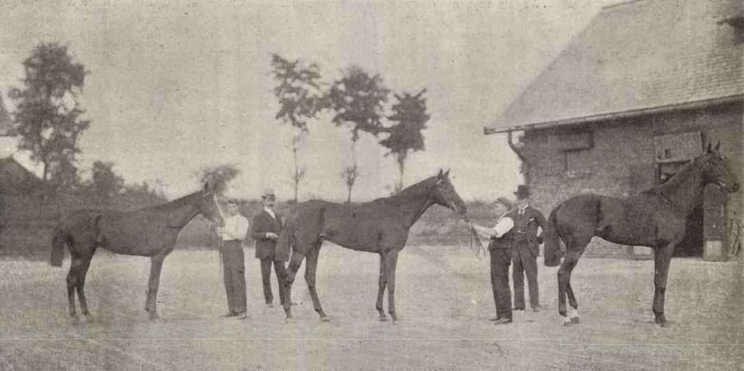 Második utunk a liberális Jones Reeveshez vezetett, a ki legkedveltebb zsokénknak, Adamsnak adta egyik leányát és Alagon önmagának és Adamsnak fejedelmi kényelemmel berendezett kastélyt épitett. Reevesnél többi között a báró Königswarter, Wenkheim gróf, Jankovich-Bésán Gyula, Losonczy, Pálffy herczeg és a braganzai herczeg lovai vannak trénirozásra. Tehát körülbelül a legtöbb ló felett rendelkező mesterünk. Reeves barátságosan fogadott és minden kérésünknek megfelelt, a mit képeink is bizonyitanak.