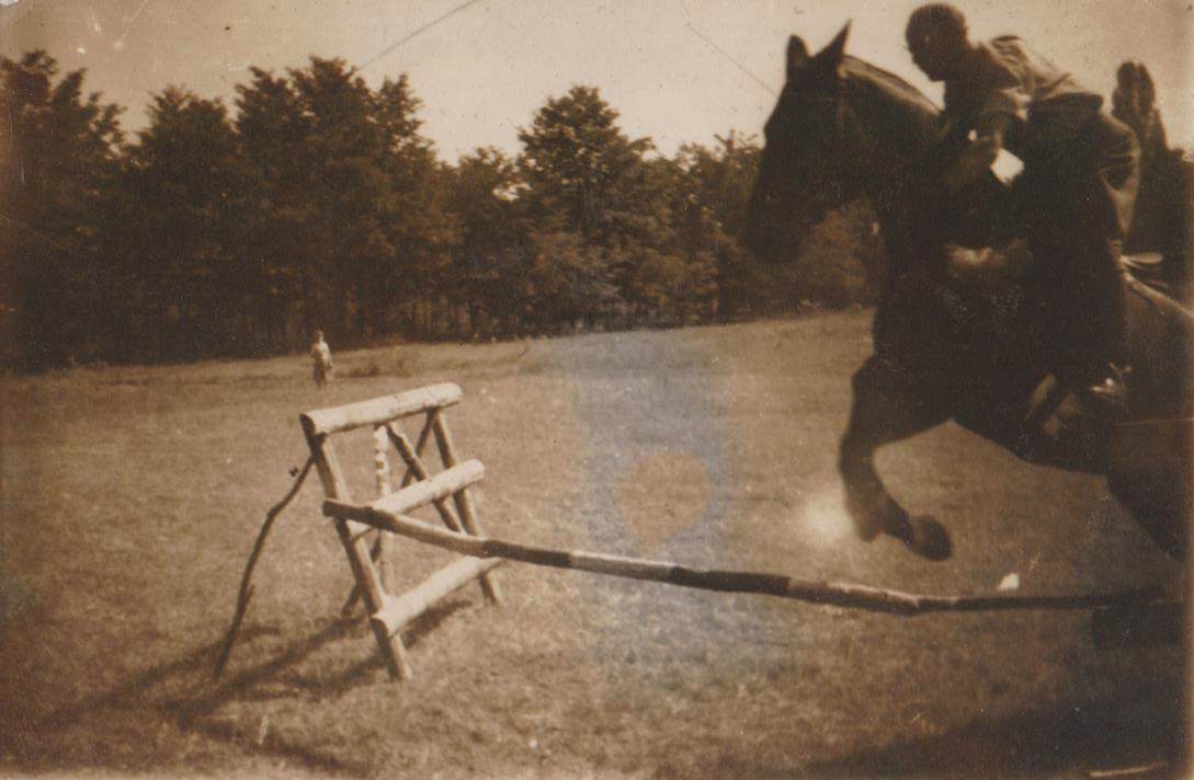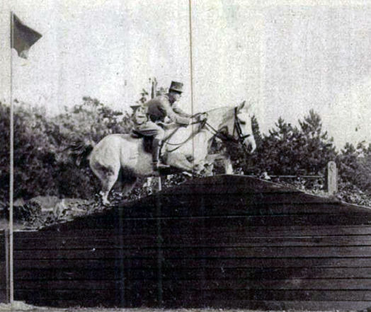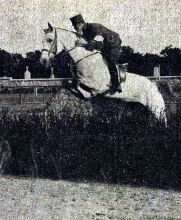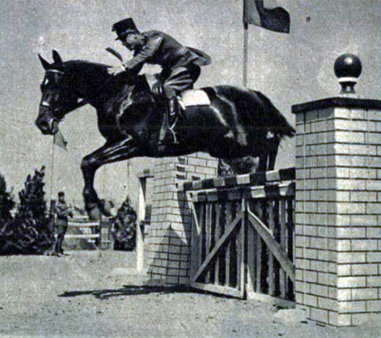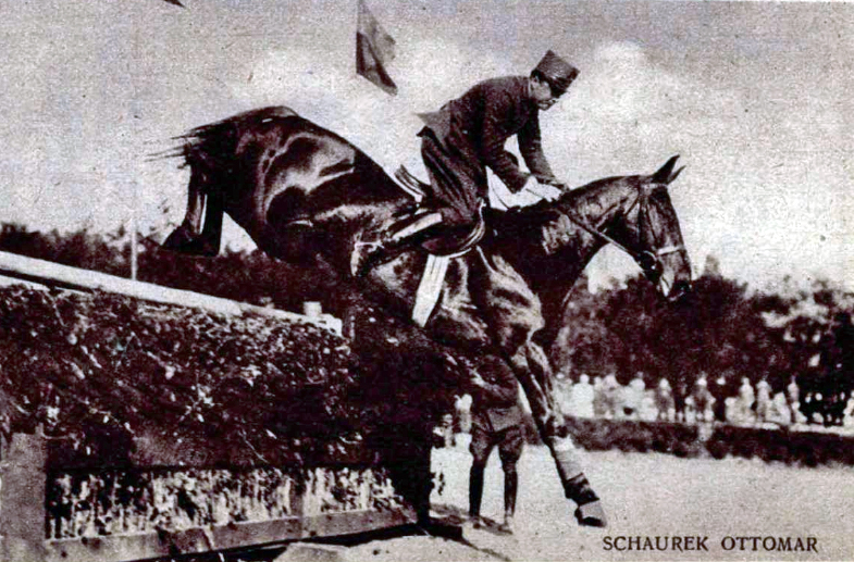 Képek a Honvéd Lovas Olimpiai Bizottság nemzetközi lovasmérkőzéseiről. […] Schaurek Ottmár százados […] a vadászugratásban
