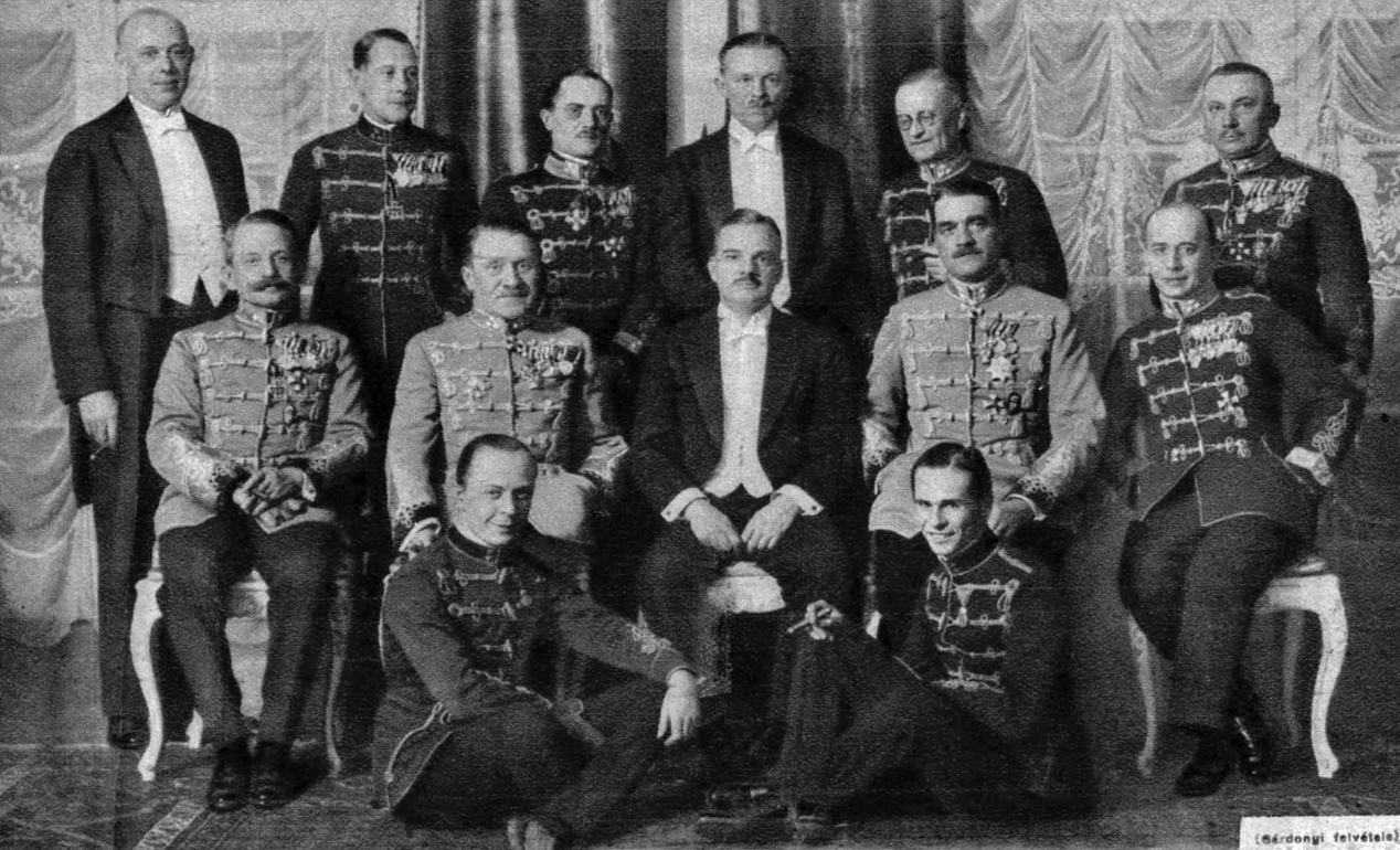 Az Egyesült-Államok budapesti követe (N. Roosevelt) estélyt adott a Nev-Yorkban nagy sikerrel szerepelt magyar lovastisztek tiszteletére. Az estély résztvevői, balról jobbra: (álló sor) W. A. Ardgman követségi attasé, Sibrik százados Ruszkay ezredes, Tuck S. P. követségi titkár, Seller ezredes, Szaplonczay ezredes, (ülő sor) Kozma tábornok, Kárpáty gy. tábornok, Nicolas Roosevelt követ, Rapaich altábornagy, Malanotti ezredes (lent ülnek) Schaurek főhadnagy és Endrődy főhadnagy.