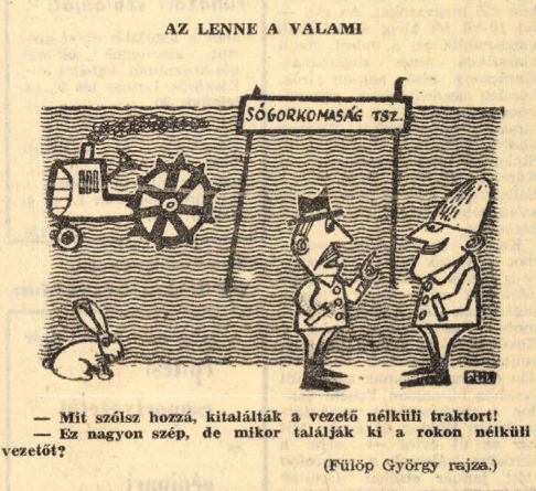 [7] Tavasszal már 25 vezető nélküli traktor szánt az országban, in: Pest Megyei Hírlap, 1963/293: 2.