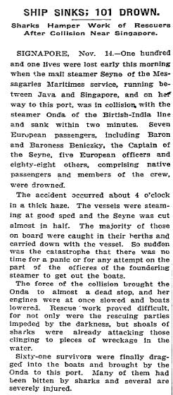 1909. november 14-én, a La Seyne nevű francia postagőzös megszokott útvonalán haladt az Indonéz szigetvilág hajnali sötétjében célállomása, Szingapúr felé. Két nappal azelőtt indult Jáva szigetéről, s már csak 80 mérföld volt hátra, csak néhány óra kellett volna, hogy megérkezzen. A holdtalan éjszakán a tenger nyugodt volt, az őrszemek kivételével szinte mindenki aludt a hajón, köztük egy fiatal magyar nászutas pár, Beniczky István és felesége is. Az ifjú Szolnok megyei földbirtokos és Waldeck Valéria grófnő 1908 nyarán kötöttek házasságot, majd rögtön egy hosszú, föld körüli nászútra indultak. Több mint egy éve járták már a világot, számos kontinenst és várost felkeresve. Budapestről Bécsbe, majd Németországot és Dániát érintve Norvégiába utaztak. Innen egy hosszabb londoni és párizsi tartózkodás után a Szuezi-csatornán áthajózva Ceylon szigetére érkeztek. Kína nagyobb városainak felfedezése után Japán felé vették útjukat, ahol 1909 áprilisában együtt uzsonnázhattak a japán császári párral és a japán miniszterelnökkel. A Hawaii- majd a Fiji-szigeteken töltött hetek után Új-Zélandra, Ausztráliába, majd innen Indonéziába, Jáva szigetére hajóztak. A honvágy azonban lassan felülkerekedett a kalandvágyon, István és Valéria már a hazatérést tervezgették. A Jáván töltött hetek után a Szingapúrba induló postahajóra, a La Seyne-re szálltak. Az első osztályon, az elsőtiszt és a hajóorvos szállása mellett foglaltak kabint. A gőzös gyorsan haladt velük nem sejtett végzetük felé. Az utolsó hajnalon már a Szingapúrhoz közeli Rhio szorosban jártak, amikor fél négy körül hirtelen szörnyű ütés rázta meg a hajót. Az ellenkező irányba haladó brit Onda gőzös hatalmas erővel csapódott a La Seyne oldalába, felszakítva annak oldalfalát. A hajótestbe félelmetes dübörgéssel ömlött a víz, a gőzös azonnal süllyedni kezdett. Az alvástól még kába utasok között rövidesen pánik tört ki, sokan gondolkodás nélkül vetették magukat a tengerbe. A hajó kazánja felrobbant, többen ekkor vesztették életüket.