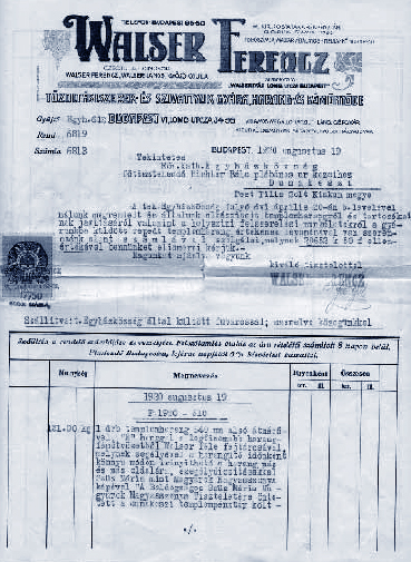 A Walser-gyár számlája a Mária-harangról (1921) [31]