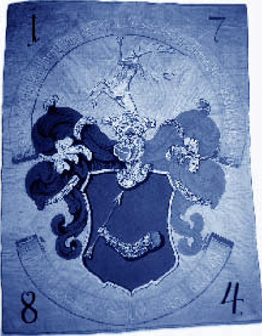 A halotti zászlón a korona sem szerepel, Wattay I. Pál címeréhez hasonlóan „lebeg” a nyilat tartó kar. A sisakdísz szarvasa a szájában lefelé mutató nyilat tart.
