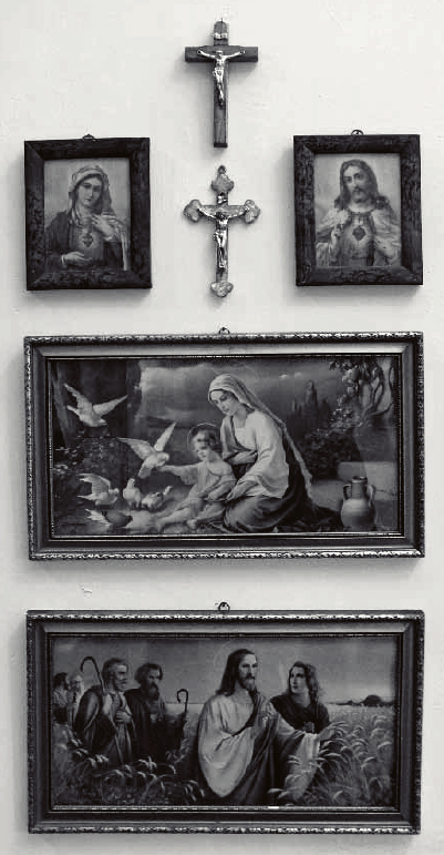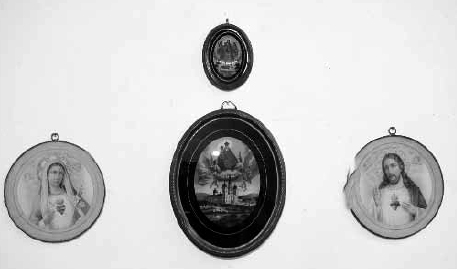 A szentsarokból nem hiányozhatott a 19. század második harmadától gipsz, vagy porcelán szobor formájában a szimmetrikusan, mindig párosan elhelyezett Jézus Szíve és Mária Szíve ábrázolás. A fő helyen, középen azonban szinte minden esetben Mária szobra állt, ezzel is Szűz Mária magyar néplélekben betöltött kiemelt helyére utalva. A Kisjézus különböző ábrázolásai minden esetben polgári hatást mutatnak. A lakás szentsarka a mindennapi otthoni hitélet legfontosabb helye volt. Reggel ébredéskor, este lefekvéskor felé fordultak. Az imádkozás rendje általános a magyar paraszti kultúrában: az ajtó melletti falon lévő szenteltvíztartóból vett vízzel keresztet vetettek, majd az ágy feletti keresztről, vagy a sublóton lévő imakönyvből kézre vették a rózsafüzért, hogy állva, vagy térden – a szentsarok képei és szobrai előtt – elmondják az imát, majd megcsókolták a kis imakönyvi képet, a rózsafüzért és a becsukott imakönyvet. A fohász és a kegyelem elnyerését segítő szakrális tárgyak azonos erejűek a népi hitéletben, együttesen pedig erejük megsokszorozódik.