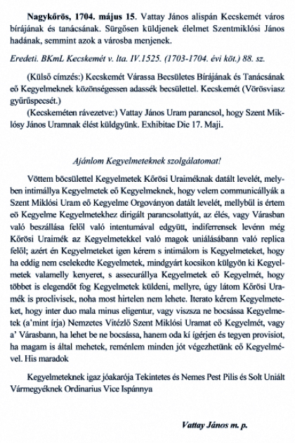2. rész. Felsővattai Wattay János kuruc alispán és István kuruc zászlótartó