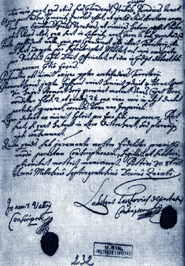 „Joannes Vattaj” menlevele „Joannes Palfy” aláírásával