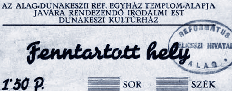 Nagyon érdekes dokumentum maradt fenn 1927. május 26-ról. „Az alag-dunakeszi Ref. Egyház első imaház (torony) csillagjába elhelyezett írás másolata.” Az írás tartalmazza a református vallású növendékek és iskolaigazgatók névsorát, nyolc egyháztag nevét, a konfirmáltak névsorát, a presbitérium tagjainak nevét: Kirner A. Bertalan, Szemere Kálmán, Horthy Jenő, Juhász Ferencz, Maracskó Lajos, Varga József, Szép Károly, Csizmadia Lajos, Szabó Lajos, Gérecz Ödön, Szvoboda István, Ozsváth Károly. Az irat végén feltüntetik: „Egyház alakult: 1921-ben, első lelkész: Kirner A. Bertalan, esperes: Nagy Ferencz, püspök: dr. Ravasz László.” Fennmaradt az ünnepi istentiszteleti énekek sorrendje is: „I. Istentisztelet: 25, 60, 100, 217. II. Konfirmáció vizsga: 218. III. Csillagfeltétel (kint) XC, imádság (bent) 37 (harangozás). IV. Díszgyűlés (Kultúrterem).”