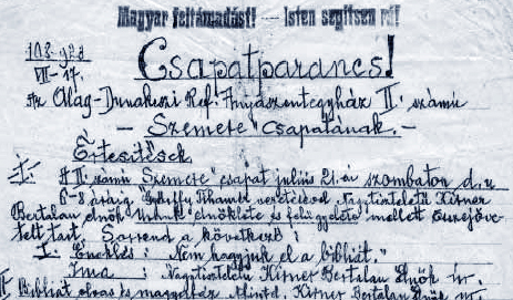 Július 21-én csapatgyűlést tartott a június 17-én Hegedűs Elek csapatparancsnok vezetésével alakult „Cserkész-csoportosulás”. Az Alag–Dunakeszi Református Egyház Ifjúsági Szemere Csapatába önként jelentkezők között volt váci reáliskolai tanuló, bölcsészhallgató, kertész, szakács és műszerész tanuló, gimnáziumi, polgári és elemista növendék, technológus, valamint orvostanhallgató is. Köszönésük „Magyar feltámadást!”, a felelet pedig „Isten segítsen rá!” volt. Ismerjük a cserkészek következő szombatra tervezett programját is: „Tábortüzet rendezhetünk a Duna partján és az éjszakát ott töltjük; ott kondérba főzünk vacsorát és másnapra ebédet, stb. Az anyagot vagy összeadni, vagy pénzt kell kivetni. Éjjel őrséget állítunk, meleg pokróc és szalma kell. Fürdőzés, játékok, tábori élet.”
