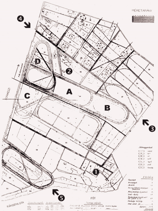 Ekkoriban három pálya állt rendelkezésre a tréningező lovaknak. Az első, a már bemutatott Úrlovas-pálya egy északi hosszoldalán megnövelt egyenessel (B). A korabeli egyenes végén, a mostani téli pályán, három hatalmas fenyőfa áll. A második egy egyenes pálya volt (C), amely az előzőt átlósan szelte át. Egyik vége a mai Alagi útnak a Repülőtéri útba csatlakozásánál kezdődött, és a jelenlegi pálya alsói végénél lévő buszmegállónál végződött. Ebből a pályából még láthatunk egy kis részt, ha a Repülőtéri útról a Kápolna utca felé letérünk jobbra, és szemügyre vesszük az ottani nagy füves területet. Bizonyos, hogy már a 30-as években sem használták, mivel a korabeli térképeken is csak egy szakasza látható. A harmadik pálya – tulajdonképpen az, ahol 1896-tól a versenyeket futották – háromszög alakú volt, lekerekített csúcsokkal (D). A befutó 400 méteres egyenese, a cél utáni kanyar és a mostani bejárattól még 30 méter, a mai pálya része. Ez az új pálya a mai bejárattól az ott látható fenyősor mentén a repülőtér közepén elkanyarodva, az első pálya fasori hosszoldalának ütközve, majd vele párhuzamosan haladva fordult a célegyenesbe. Belsejében jól megépített akadálypálya is volt, sok kanyarral. Ez lett az Úrlovas Szövetség új versenypályája, míg a korábbi az idomító vagy gyakorló pálya nevet kapta.