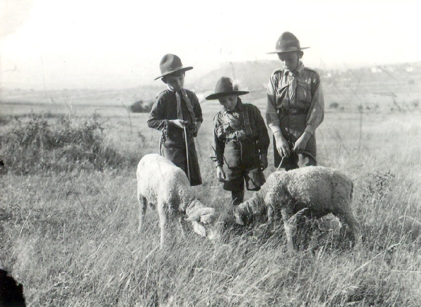 A csapat kiscserkészei bárányokat simogatnak