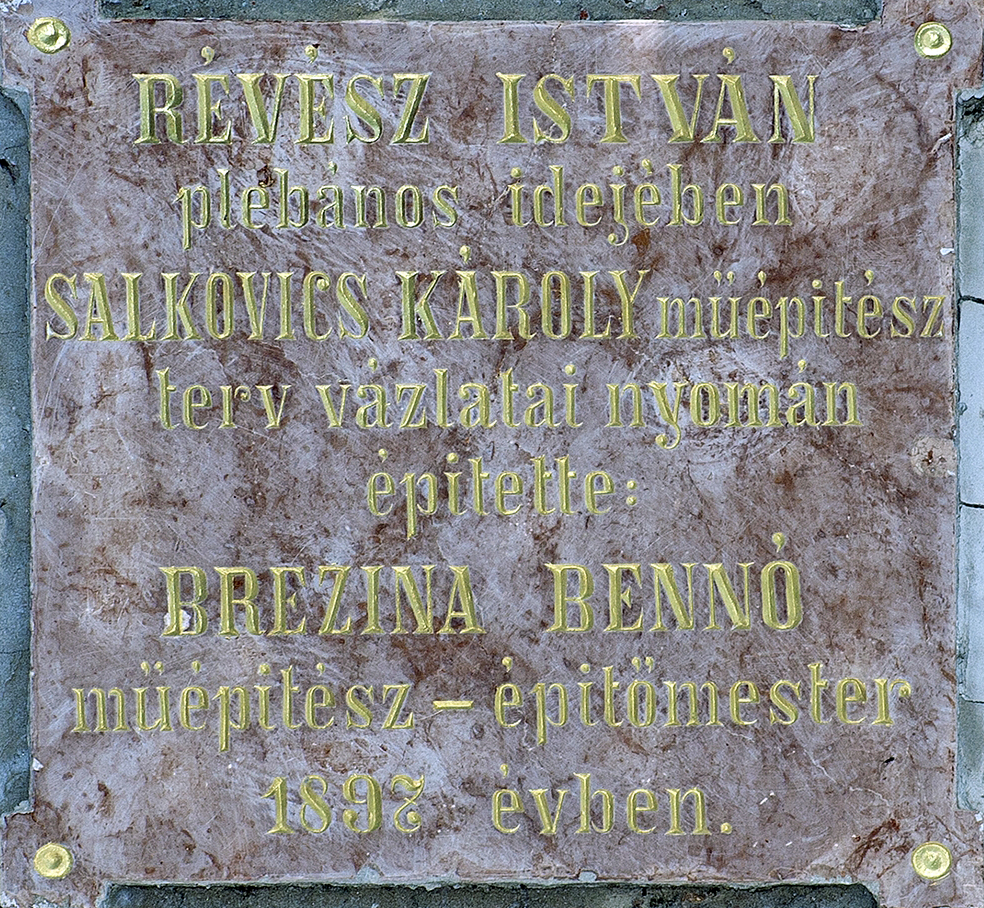 De ki is volt Brezina Benno, aki az épületet felépítette? Az építész alakjáról, életrajzáról a közelmúltig nem tudtunk semmit, egészen addig, amíg nem jelentkezett Brezina dédunokája, dr. Laky Ferencné, dr. Varga Izabella, és a következő életrajzot a Szemle szerkesztőségének rendelkezésére nem bocsátotta: „Brezina Benno (1862-1932?) Oravitzán, Krassó-szörény vármegyében, a Bánáti régióban született. Édesapja Brezina János, Resicabánya főmérnöke volt, és ásványtani kutatásokat végzett. Édesanyja az olmützi Szt. Vencel székesegyház karnagyának a leánya, Maresch Katalin. A Maresch család híres kürt-zenész família volt. Dédapámnak egy fiútestvére volt, Brezina Rezső (1865-?). Mindketten építészek lettek, és közös cégben dolgoztak. Igen keresett építészekké tette őket Brezina Rezső kitűnő üzleti érzéke, dédapám művészi tehetsége. Tagjai voltak a Magyar Mérnök és Építész Egyletnek. A legtöbb munkájuk Budapesten, az Erzsébetvárosban található: főleg eklektikus, több emeletes lakóházak. Budapestnek ebben a kerületében a XIX. század végén felgyorsultak az építkezések a Nagykörút megépítése után. Dédapám kapott megbízást a később lerombolt „Regnum Marianum” templom felépítésére. A templomot Kotsits István tervei alapján dél-francia stílusban építették fel 1921-1931 között. A templom helyén ma egy kereszt emlékeztet az épületre. Nagy öröm volt számára a Dunakeszin végzett munka: a Városháza (Brezina Rezső) és az iskola építése. Nagyon szerette a települést, ezért Alagon a mai Kossuth u. 5. sz. alatt egy nyaralót épített a család részére. 1885-ben házasságot kötött Tóth Izabellával (1865-1916). Házasságukból egy leánygyermek született: Brezina Izabella. Nagymamám és családja állandó lakhelyéül választotta Alagot. Nagymamám Kiss Józsefné, Brezina Izabella haláláig a település lakosa maradt. Brezina Bennó lánya, és két unokája ma a Dunakeszin, a régi temetőben alusszák örök álmukat. Brezina Rezsőnek sajnos nincsenek leszármazottai, felesége az 1930-as évek végén halt meg Budakeszin. Dédapám emlékét őrzi két dédunokája és két ükunokája.”
