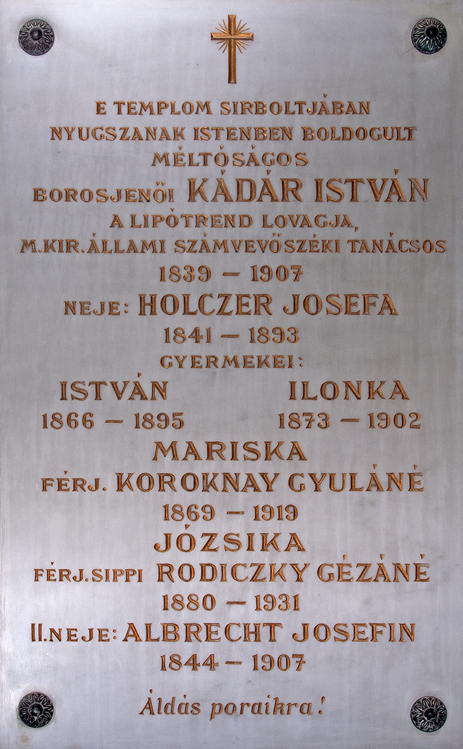 A sírboltban nyugvók közül Kádár István és családja valamilyen okból külön emléktáblát kapott.