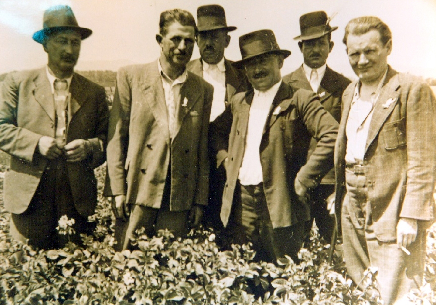 Dunakeszi gazdálkodók a község határában 1947-ben. Balról Kardos József pék, Szabó György, Szabó János bíró, Lengyel József és Sziráki György