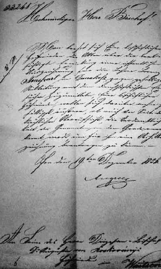 A Budai Tankerület tanácsosának a váci püspökhöz írt levele, melyben Monspart Lőrincet kitüntetésre javasolja