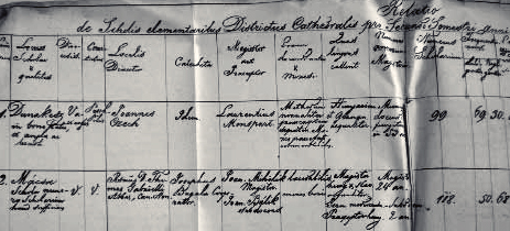 A Váci Püspöki Hivatalnak írt jelentések. A dunakeszi iskola adatainál mindenütt olvasható Monspart Lőrinc kántortanító neve