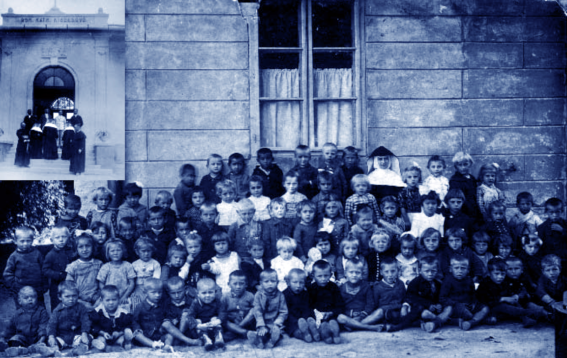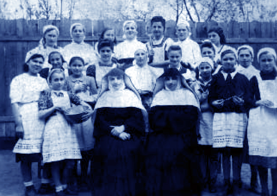 Kilencven évvel ezelőtt, 1922-ben Richter Béla plébános kezde­ményezésére telepedett le Dunakeszin a Miasszonyunkról Ne­vezett Kalocsai Iskolanővérek rendje. A nővérek, a mai Budai Nagy Antal utcában kapott épületben 1923-ban óvodát nyitot­tak Római Katolikus Kisdedóvó néven, amely a mai Eszter­lánc Óvoda elődjének tekinthető. (A nagy fénykép az 1927-es óvodáscsoportról készült, a bal felső sarokban az intézmény főbejárata látható.) A nővérek három évvel később átvették az elemi iskola (mai Szent István Általános Iskola) leányainak tanítását is. 1926-ban megalakították a Szívgárdát, melynek első osztályos koruktól lehettek tagjai a lányok, akik többek közt együtt készültek az elsőáldozásra. Az Árpád-házi Szent Margit Leánykört (kis képünkön), melynek tagjai 13-16 éve­sek voltak, szintén 1926-ban alakították. A nővérek a délutáni foglalkozásokon a mindennapi életre, ezen belül a családanyai feladatokra készítették fel őket. Kötöttek, horgoltak, népvisele­ti ruhákat varrtak, valamint kirándulásokat és teadélutánokat is szerveztek. 1928-ban létrejött a Szent Ágnes Leánykör is a 10-13 éves korosztály számára. A fiatalok közösségeihez ha­sonlóan a Dunakeszi Katolikus Nőegyletet is a nővérek fogták össze. 1950-ben, az egyházi szervezetek elleni támadások során a szerzetesrendek tagjait nagyrészt gyűjtőtáborokba zár­ták. A dunakeszi nővérek, – akiknek addigra már fel kellett hagyniuk az oktatással, s rongyszőnyegszövésből éltek – a he­lyi hatóság jóvoltából ugyan nem kerültek lágerbe, de 1950. szeptember 21-én végleg el kellett hagyniuk a Klauzál utcai zárdaépületüket s Dunakeszit.