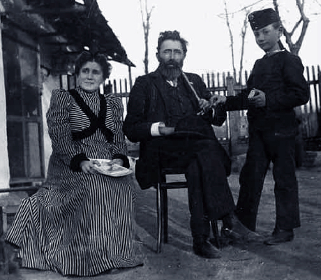 Zaphiry Heléna, Nagy Géza és Újházy György a Fóti út 9. számú házuk hátsó udvarán