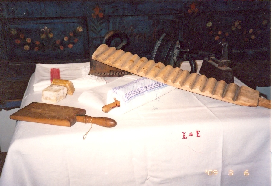 Később lassan elhagyták az addig hamulúggal folytatott tisztítást, s már teknőben és szappannal mostak. A mosószappant is saját maguk főzték, házimunkával készítették. A szappan alapanyagát, a faggyút egész évben gyűjtötték. A disznó-, marha-, és birkafaggyú volt a legalkalmasabb, de az olajpogácsa is megfelelt a célnak. Szappant általában csak kora tavasszal, a húsvét előtti időszakban főztek, viszont akkor egy egész évre valót. A főzéshez lúgot használtak, amelyet katlanban forraltak fel az udvaron. A forró lúgba beletették a faggyút és nagy lángon főzték, amíg a lúg szét nem marta azt. Amikor ez megtörtént, lassú tűzön folytatták a főzést egészen addig, amíg a szappan meg nem jelent a lúg tetején. Az első főzés után a szappan még nem volt tiszta, így ha fehér szappant akartak készíteni, akár négyszer is átfőzték azt új lúgban. Amikor megfelelőnek találták, a folyékony szappant ruhával letakart farekeszekbe öntötték, majd kihűlés után méretre darabolták. Ezután a padláson vagy a szoba mestergerendáján szárították. Mosás után, az udvaron álló fák törzsére tekert és azok közé kifeszített vastag madzagon megszáradt ruhákat mángorlóval[3] simították. A gyolcsból készült ruhákat abban az időben faszenes vasalóval vasalták, melybe izzó faszén-parazsat raktak. Gyakran előre-hátra lóbálták, hogy izzásban maradjon, és jól átmelegítse a vasat. „A vasalót felmelegítő faszén illatát most is érzem!” – mondta az egyik látogató, amikor meglátta a gyűjteményünk öreg vasalóját. A néphagyomány szerint nem moshattak a hét bármelyik napján. Tiltottak voltak a vasár- és ünnepnapok, a péntek, Borbála és Luca napja, sőt még a halottak hetében, november elején is tilos volt mosni. A babona szerint a padláson nem száradhatott ruha a karácsony és vízkereszt közti időben.