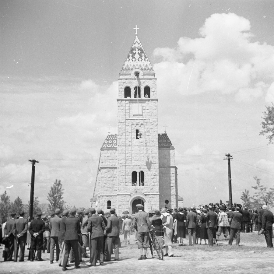 A Szent Imre-templom harangjainak beemelése 1938-ban