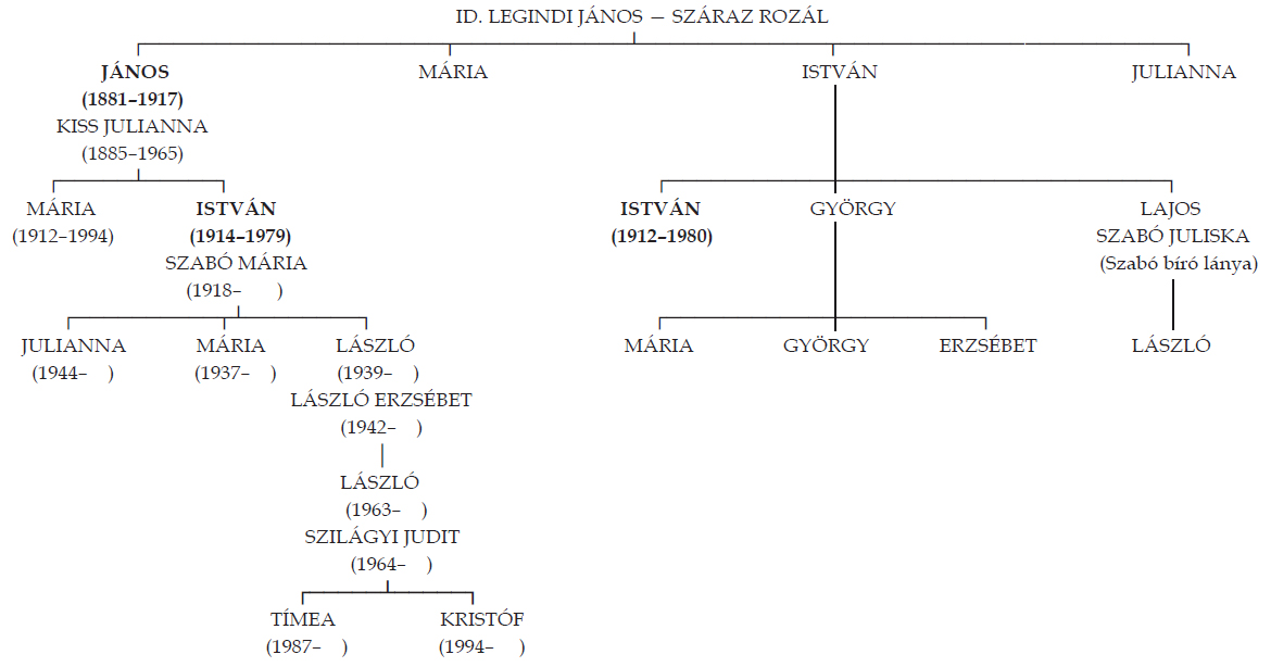 Több olyan család is él Dunakeszin, melyek története századokat átölelően összekapcsolódik városunk történetével. A Legindiek csaknem 250 éves múltra tekinthetnek vissza a településen. Legelső ismert családtagunk Legéndi Mátyás, aki féltelkes jobbágyként szerepel egy 1768-ban Dunakesziről készült összeírásban. Feltételezhető, hogy a Legéndi családnév alakulhatott át később – esetleg egyszeri véletlen elírás vagy félreolvasás következtében – Legindivé. Azok a családtagjaim, akikre dédnagymamám segítségével sikerült visszaemlékeznünk, már többnyire a Legindi nevet viselték.