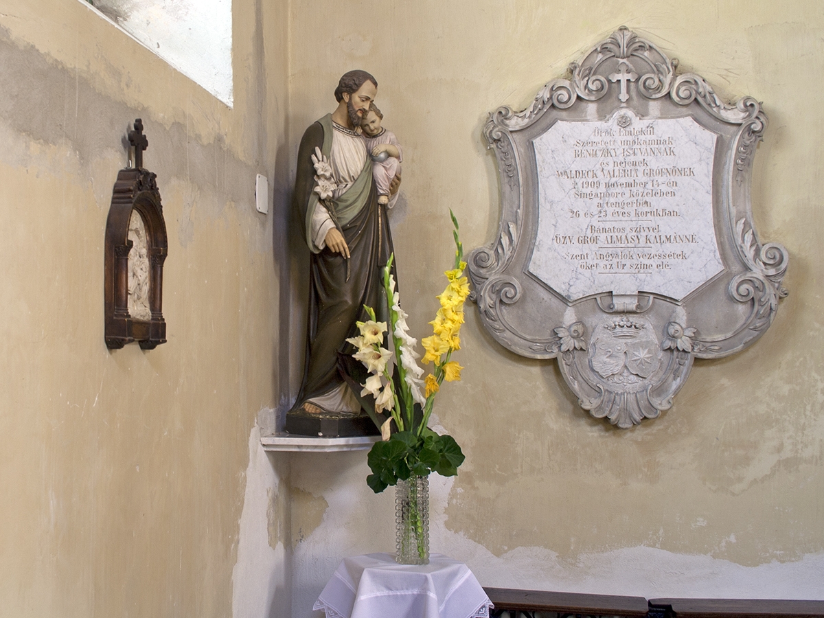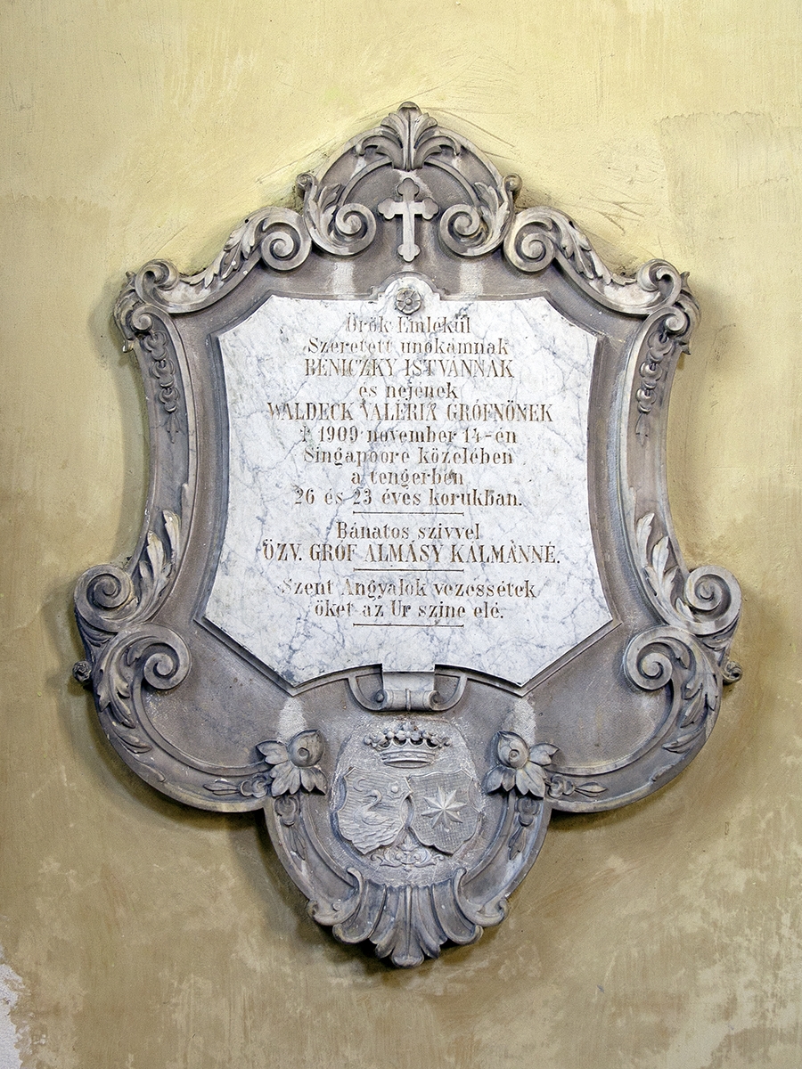A Nepomuki Szent János kápolnában találjuk a tragikus körülmények között elhunyt gróf Beniczky István és gróf Waldeck Valéria emléktábláját. Az emléktáblát Beniczky nagymamája, Almássy Kálmánné emeltette, aki a kápolna építésének a finanszírozója is volt. Az emléktábla szövege a következő: "Örök emlékül szeretett unokámnak, Beniczky Istvánnak és nejének Waldeck Valéria grófnőnek, akik 1909. szeptember 14-én Singapore közelében halálukat lelték 26 és 23 éves korukban. Bánatos szívvel özv. gróf Almássy Kálmánné. Szent Angyalok vezessétek őket az Úr színe elé."