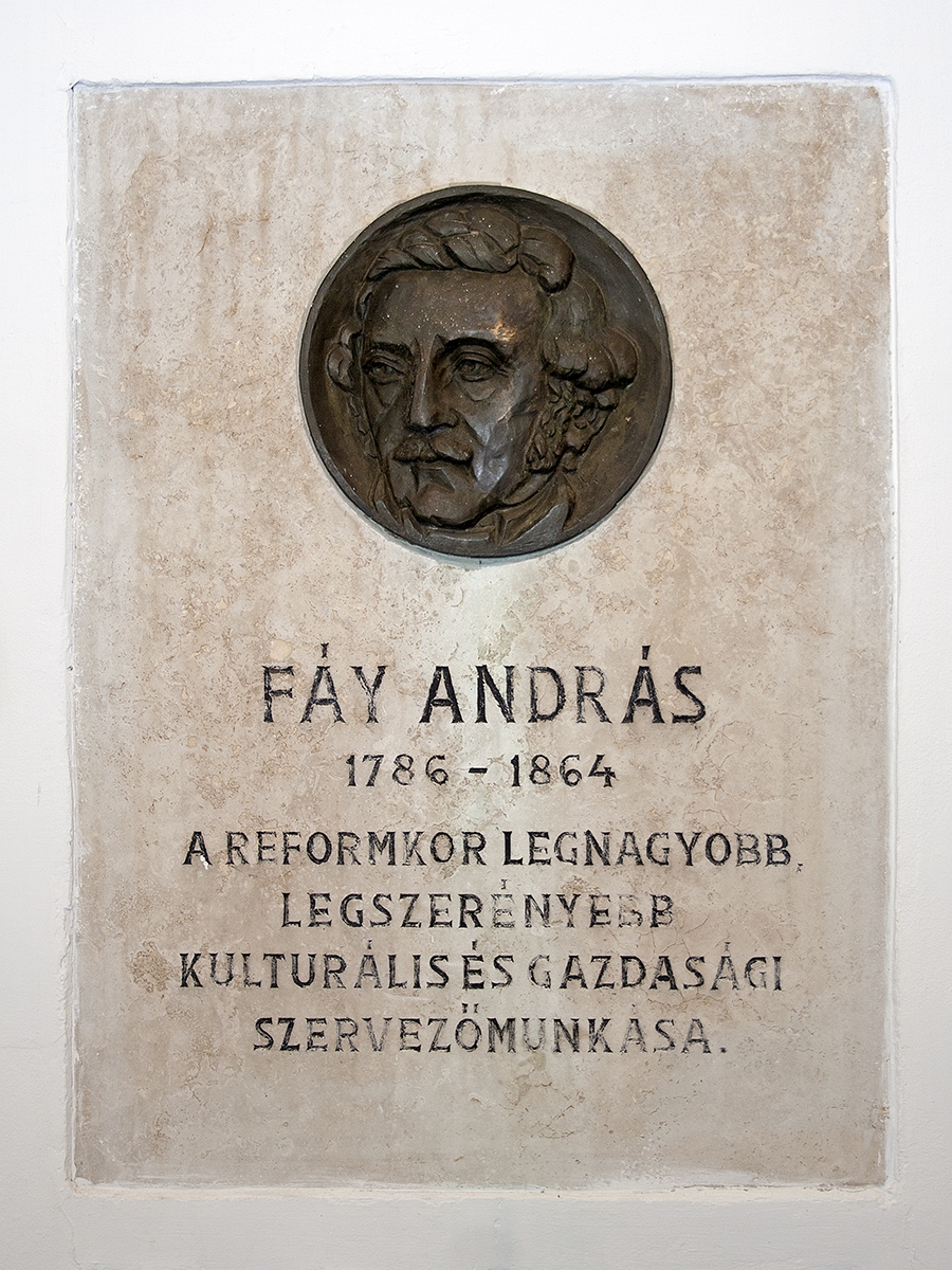 Fóton, a Fáy présház falán két emléktábláját is találjuk Fáy Andrásnak, a reformkor jeles alakjának. Fáy András a Zemplén vármegyei Kohányban született 1786. május 30án. Író, politikus és nemzetgazda, a magyar reformkor irodalmi és társadalmi mozgalmainak egyik legtevékenyebb alakja. A sárospataki jogi tanulmányok után 1804-től Pesten lett joggyakornok, ahol aztán ügyvédi oklevelet szerzett kitűnő képesítéssel. Ügyvédkedés helyett azonban – atyja kedvéért – közigazgatási hivatalt vállalt: 1810-ben a pesti, 1812-ben pedig a váci járás alszolgabírója, majd szolgabírája lett. 1818-ban visszavonult gombai birtokára gazdálkodni, hogy mellette életét teljes egészében az irodalomnak és a társadalmi tevékenységnek szentelhesse. Szerette az irodalmat és az írókat: sokat olvasott, anyanyelvén s latin nyelvű római klasszikusokon (Cicero és Tacitus) kívül a modern felvilágosult német, francia, s angol irodalmat, 1807-től pedig már maga is írogatott. Háza csakhamar a fiatal írók találkozóhelye lett. Rendes látogatói voltak többek között unokabátyja Szemere Pál, Kisfaludy Károly, Vitkovics Mihály és Vörösmarty Mihály, aki a híres Fóti dalát éppen Fáy szőlőjében, egy szüreti mulatság alkalmával szavalta el. Fáy mint író lépett először a nyilvánosság elé, de miután 1823-ban Pestre költözött – mint Pest vármegye tekintélyes képviselője – mindinkább a politikai és társadalmi téren fejtett ki tevékenységet. Széchenyi színre lépését, különösen a Hitel megjelenését követően Fáy lelkesedéssel csatlakozott a „legnagyobb magyarhoz”, aki – felismerve benne a rokongondolkodású nemzetgazdát, akinek liberális eszméi rá is hatottak – szövetségesének fogadta. Előbb Pest vármegye gyűlésein, majd 1835-ben követté választva, az ellenzék egyik tekintélyes tagjaként az országgyűlésben szolgálta mesterkéletlen, magyaros józan beszédeivel a gazdasági és társadalmi reformok ügyét. A társadalom körében buzdítással és példaadással toborzott híveket eszméinek. Legnevezetesebb alkotása a Pesti Hazai Első Takarékpénztár (a mai OTP Bank Rt. egyfajta jogelődje), melynek eszméjét nemcsak a kishitűek, de még maga Széchenyi is kétkedéssel fogadta. Fáy a fontolva haladás híve volt, elhatárolta magát minden radikális eszmétől. A szabadságharc idején visszavonult gombai birtokára: Széchenyihez hasonlóan egyszerre idegenkedett a forradalomtól és a forradalom ellenségeitől. 1849 után életét főleg az irodalomnak és családjának szentelte. Fáy 1864-ben hunyt el Pesten. Fáy András régebbi keletű emléktábláját Németh Kálmán készítette 1968-ban. Az emléktábla szövege: "Fáy András 1786-1864 a reformkor legnagyobb, legszerényebb kulturális és gazdasági szervezőmunkása."