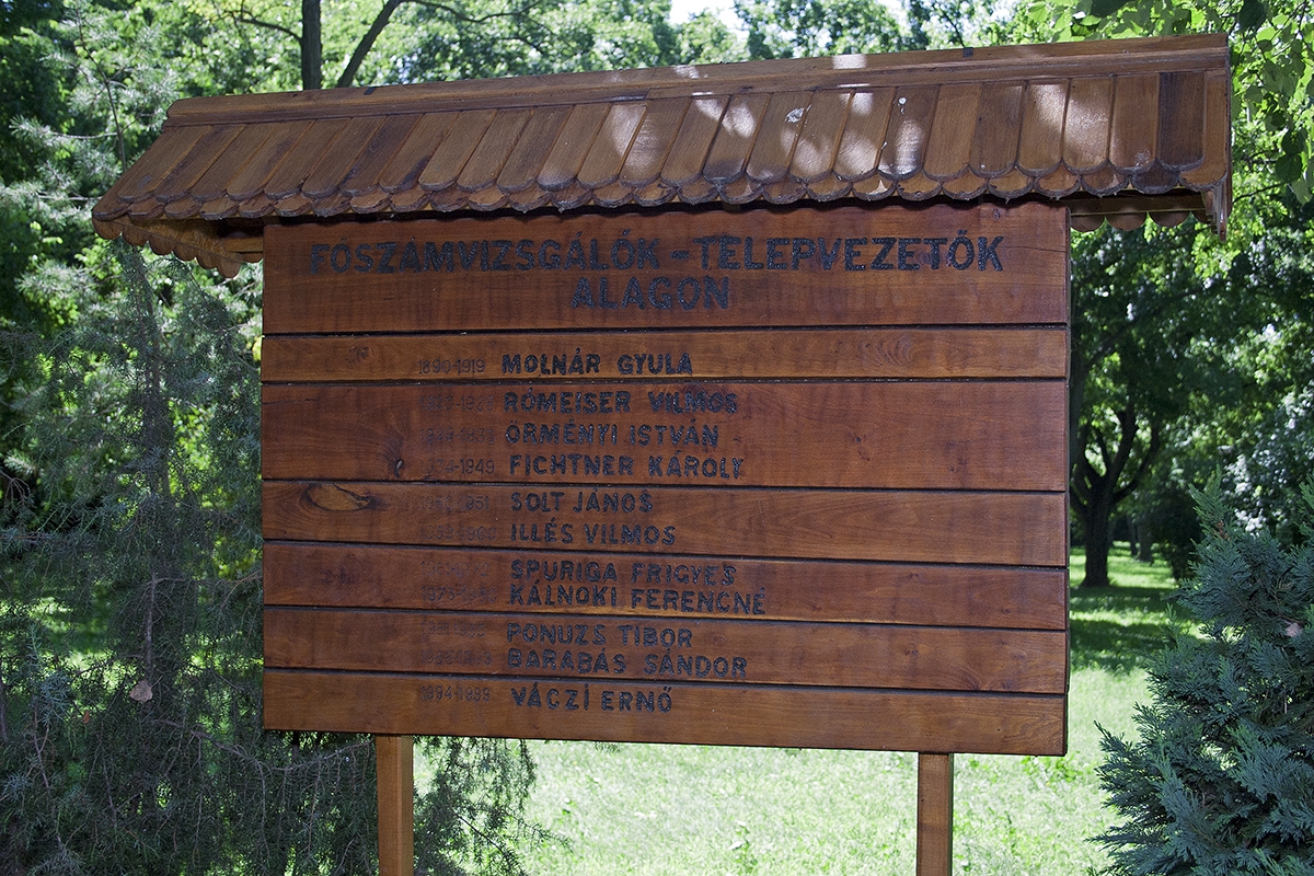 Az alagi tréningtelep főbejáratának a közelében találjuk a telep korábbi vezetőinek és főszámvizsgálóinak az emléktábláját. Miután 1889-ben a Magyar Lovar Egylet megvette a 2800 hold nagyságú Alag-pusztát, azonnal megindult a tréningközpont és a versenypályák építése is. A tréningtelep első vezetője Molnár Gyula volt, Alag község első bírája volt. Molnár Gyula születésének pontos idejét nem ismerjük, középiskoláit Szegeden végezte, majd a keszthelyi gazdasági akadémián folytatta tanulmányait. A herceg Gulkorszkynál letöltött uradalmi gyakorlat után 1891-től a Magyar Lovar Egylet alagi birtokának pálya- és gazdasági intézője lett egészen 1920-as nyugdíjazásáig. 1910-től az akkor alakult Alag bírája, háza a mai Károlyi utcában volt. Aktív közéleti tevékenységet végezve a község mindennapi életének összes fontosabb színterén jelen volt: a Lovász Egylet alelnöke, az Alagi Sport Club alelnöke és az Alagi Tűzoltó Egyesület díszelnöke is volt. Molnár Gyula 1939-ben halt meg, még mindig mint a község bírája. Az emléktábla szövege a következő: "Főszámvizsgálók – telepvezetők Alagon 1890-1919 Molnár Gyula 1920-1928 Rómeiser Vilmos 1929-1933 Örményi István 1934-1949 Fichtner Károly 1950-1951 Solt János 1952-1960 Illés Vilmos 1961-1972 Spuriga Frigyes 1973-1980 Kálnoki Ferencné 1981-1985 Ponuzs Tibor 1986-1993 Barabás Sándor 1994-1999 Váczi Ernő"