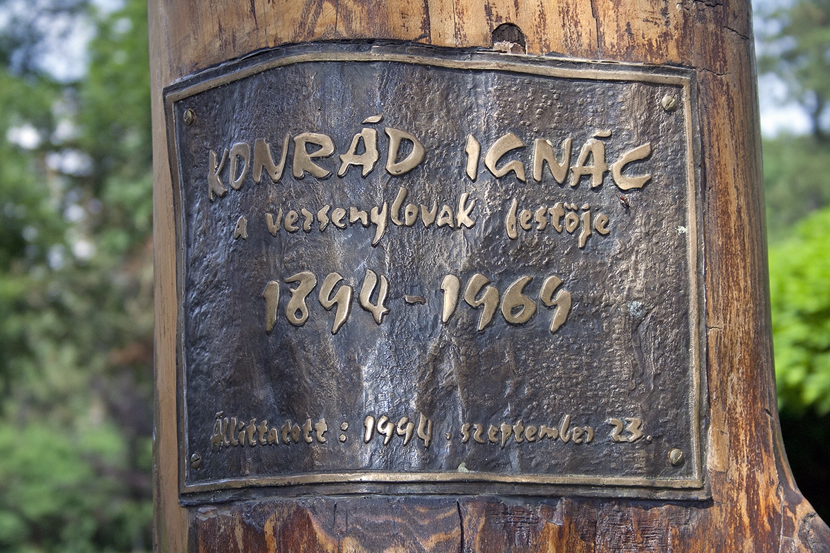 Az alagi tréningtelep parkjában találhatjuk Konrád Ignác emléktábláját. Konrád Ignác 1894-ben született Németújfalun. Már gyermekkorában felismerték kivételes rajztehetségét, művészeti tanulmányait azonban az első világháború félbeszakította. Az orosz frontra került, ahol hadifogságba esett, amelyből csak 1921-ben tért haza. Művészeti iskoláit nem folytatta, hanem autodidakta módon kezdte képezni magát. A Fővárosi Állat- és Növénykertben, az Állatorvosi Intézetben és az alagi tréningpályán rajzolta, festette az állatokat, idővel a versenylovat választotta munkáinak fő témájául. A húszas évek elején Alagon készített lóportréi feltűntek egy Strassburger nevű jómódú külföldi diplomatának, aki megkérte, hogy fesse meg számára a legjobb méneket Angliában, Franciaországban és az Egyesült Államokban. A külföldi megbízatás sokat lendített Konrád festői pályáján. Első nyilvános szereplése 1926-ban volt a budapesti egyházművészeti kiállításon, ahol Assisi Szent Ferenc látomása című olajképével szerepelt. A húszas évek végén Alagon telepedett le, és már csak lóképeket festett. A mai Tisza utcában lévő háza egyben műterme is volt, így azt úgy kellett kialakítania, hogy lovak festésére is szolgálhasson. A harmincas években a legnagyobb versenyló-tulajdonosoktól, így Drehertől, Rothchildtól és Horthytól kapott megbízásokat. Alagi munkásságának idején a kor sok kiváló versenylovának készítette el portréját. Egészségi állapota a későbbiekben nagyon leromlott, teljesen megsüketült. Ettől kezdve a Magyar Lovar Egylet támogatta őt és családját, hálájaképpen festette a Reggeli tréning Alagon című képét, amely több nemzetközi kiállításon is aranyérmet kapott. 1948-ban Párizsba költözött, és újra Strassburger-megrendeléseken kezdett el dolgozni. Konrád Ignác 1969-ben hunyt el a francia fővárosban. A műértő közönségből sokan a valaha élt legnagyobb lófestőnek tartják. Az emléktábla szövege: "Konrád Ignác a versenylovak festője 1894-1969. Állíttatott 1994. szeptember 23."