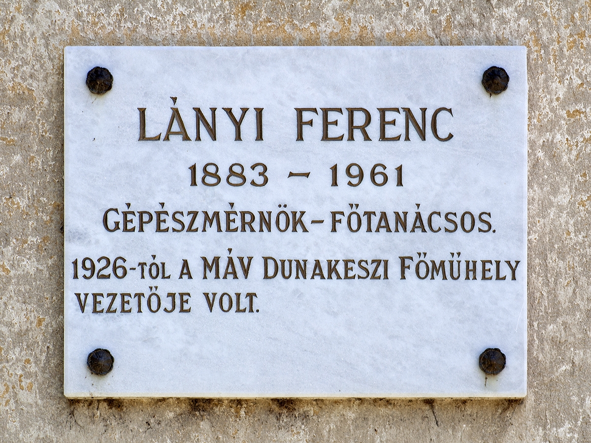 Dunakeszin a róla elnevezett sétányon találjuk a főműhely egykori igazgatójának, Lányi Ferencnek az emlékművét. Lányi Ferenc 1883-ban született Érsekújváron, 1926-ban került Dunakeszire, amikor rábízták a MÁV Főműhely vezetését, azaz majdnem 600 ember irányítását. Az első években a MÁV-lakótelep műhelyfőnöki szolgálati lakásában lakott, majd a 30-as évek végén elkészült családi házában, a mai Liget utcában élt haláláig. Három gyermeke született: Ilona, Ferenc és Katalin. Lányi Ferenc érdemeit hiánytalanul felsorolni szinte lehetetlen. Elsődleges feladatán, a termelői munka szervezésén és irányításán túl gondja volt 160 MÁV-lakótelepi lakás elkészültére, karbantartására, igazságos elosztására, a lakótelep tisztaságára és rendjére (tűzoltóság, rendészet, kertészet, pályafenntartás). Fontosnak tartotta, hogy dolgozói, ill. családtagjaik értékesen és tartalmasan használják ki szabadidejüket. Megszervezte a Magyarság Dal és Önképző Egyesületet, ill. a sportegyesületet, melyek elnökségét vállalta. Figyelemmel kísérte és támogatta a műhelytelepi iskolát is, valamint megteremtette az igényeknek megfelelő vallásgyakorlás lehetőségét(az iskolában kápolna, a legényotthonban református imaház működött), végül a műhely dolgozóit összefogva megépítette a Jézus Szíve templomot és annak orgonáját. Az ifjúsági mozgalmakat (cserkészet, leventemozgalom) a településen felélesztette, azok működését támogatta. Létrehozta az ún. szociális választmányt is, amelynek feladata a rászoruló családok anyagi, ruházati és tanszerekkel való segítése volt. Lányi Ferenc különféle módon támogatta a Banktelepen és a Révdűlőn családi házat építő dolgozóit, valamint sikerült a műhely munkásait átsegítenie a 20-as és 30-as évek gazdasági válságának nehéz évein is. Kiváló kapcsolatteremtő-készségének eredménye, hogy a Főműhelyben készültek el a kormányzói kocsik és az 1938-ban, a Szent Jobbot az országban bemutató Aranyvonat „aranykocsija”. Szaktudásával, közvetlenségével, szociális érzékenységével, közösséget kovácsoló tevékenységével kivívta dolgozóinak és családjaiknak bizalmát, tiszteletét. Termelési, kulturális és sporteredményeivel a Dunakeszi-Műhelytelep országos hírnevet vívott ki. Lányi Ferenc 1939-ben a lengyel kormánytól Arany Érdemkeresztet kapott, majd 1945-ben Fieszl János esperesplébános javaslatára a Nagy Szent Gergely Renddel tüntették ki. Szerénységére jellemző, hogy kitüntetéseit környezete csak halála után tudta meg. A Főműhelyt 1944 szeptemberéig vezette, majd nyugdíjba vonult. Lányi Ferenc 1961-ben hunyt el Dunakeszin, itt temették el. Dunakeszi városa 2002-ben tisztelete jeléül sétányt nevezett el róla a Műhelytelepen. Az emléktábla szövege: "Lányi Ferenc 1883-1961 gépészmérnök, főtanácsos. 1926-tól a MÁV Dunakeszi Főműhely vezetője volt."