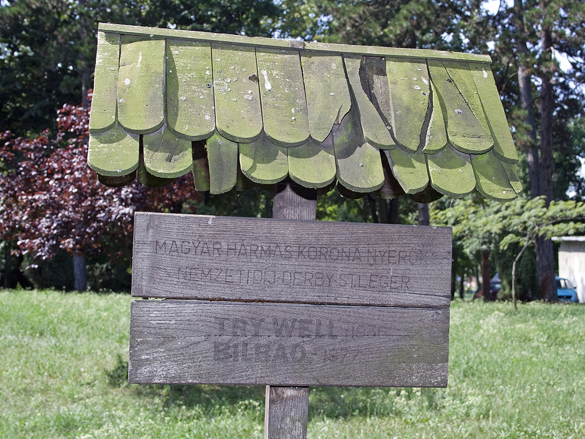 Az alagi tréningtelep parkjában, a főbejárathoz és a Hitch-kúriához közel, az ún. Bajnokok Parkjában találjuk meg a magyar Hármas Korona nyerőknek emléket állító fából készült emléktáblát. A Hármas Korona nyerőnek akkor nevezünk egy hároméves telivért, ha az év során a három kölünböző távon lefutott, legkomolyabb versenyt megnyeri és ezzel igazolja, hogy magasan évjárata felett áll tudásban. Ez a három verseny nálunk a Nemzeti Díj, a Derby és a St. Leger futama, amelyeket 1600, 2400 és 2800 méteren futnak májustól októberig. Az eltérő távok és időpontok miatt ez nagyon kevés lónak sikerült eddig Magyarországon. Az emléktábla szövege: "Magyar Harmas Korona nyerők, Nemzeti, díj, Magyar Derby, St. Leger, Try Well 1936, Bilbao 1977." Az emléktábla elhelyezése óta még két lónak sikerült Háras Koronát nyerie: April Sun 1999 és Saldenzar 2007.