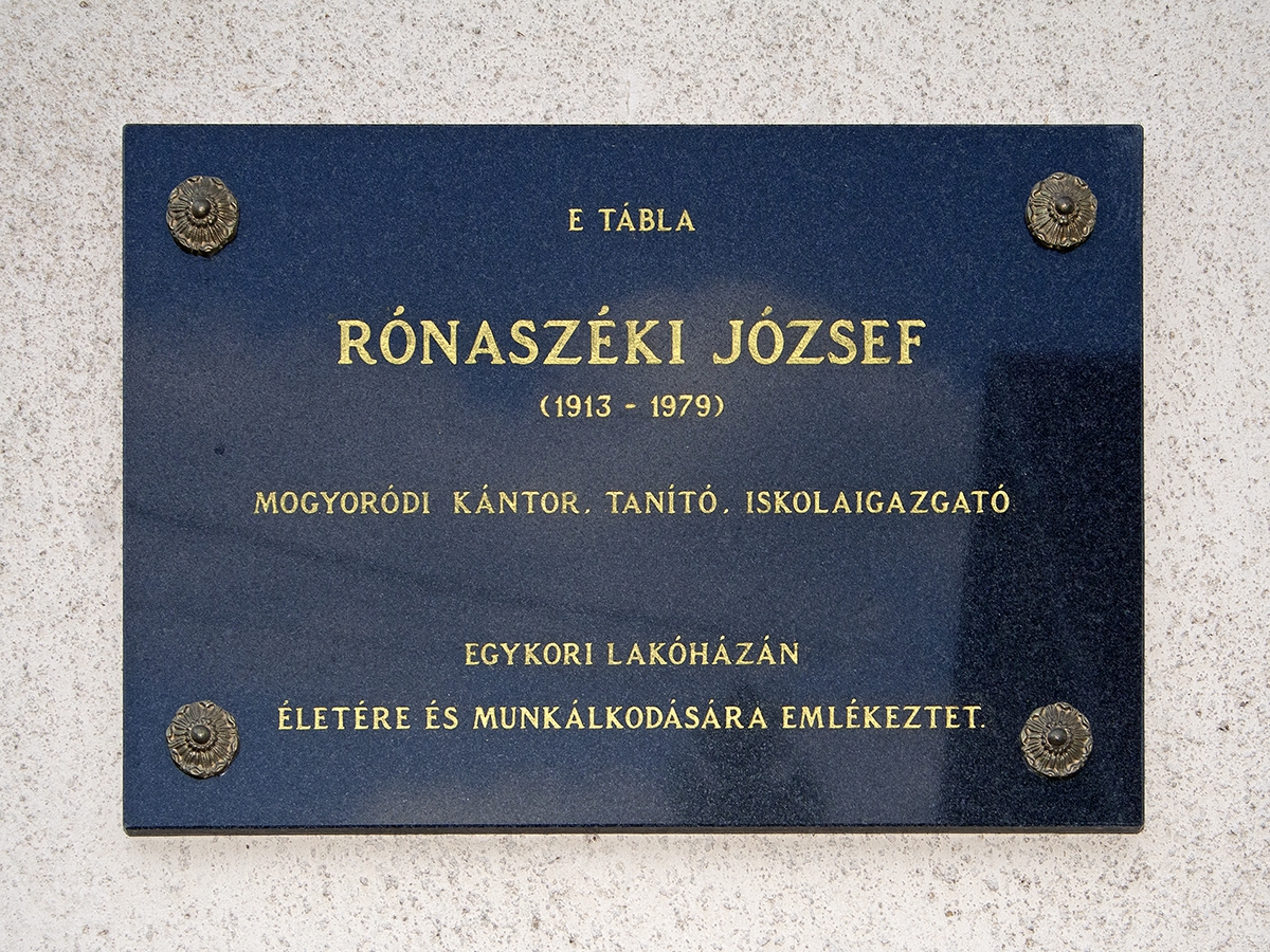 Mogyoródon, a Dózsa György utcában találjuk az egykori iskolaigazgató és kántor, Rónaszéki József emléktábláját. Az emléktábla szövege: "E tábla Rónaszéki József (1913-1979) mogyoródi kántor, tanító, iskolaigazgató egykori lakóházán életére és munkálkodására emlékeztet."