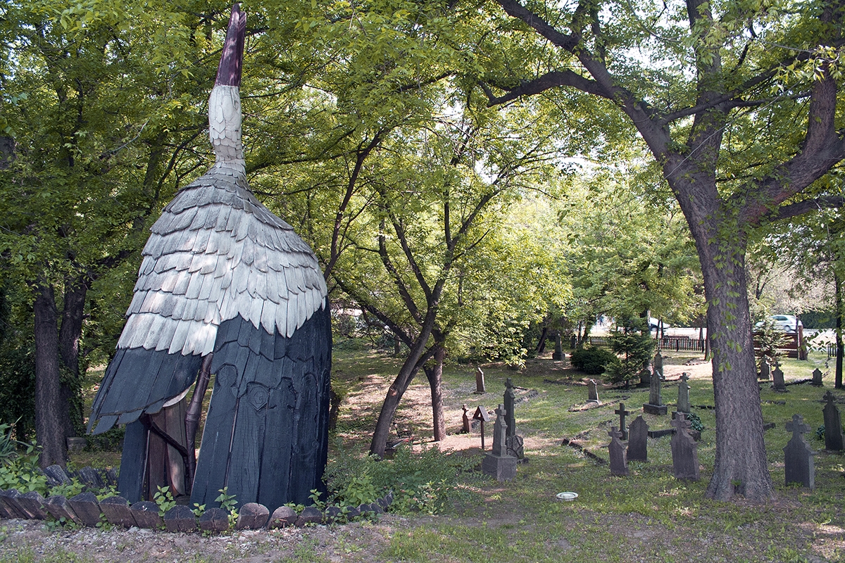 A Kegyeleti temetőben sétálva érdemes megtekintenünk Lengyel István szobrászművész alkotását, az 1956-os emlékművet, amelyet a köznyelv csak Gólyának nevez. Az emlékmű közadakozásból emeltetett 1996-ban a forradalom negyven éves évfordulójára. A Gólya a Szent István király kápolna dombján áll, nem messze attól a helytől, ahol a forradalom legvéresebb helyi eseményei játszódtak, és közelében annak a helynek, ahol az áldozatok nyugszanak. Az emlékmű egy szárnyaszegett, rablánccal és fejfákkal földhöz szegezett gólyát ábrázol, amely a szabadságvágyó magyar nemzetet szimbolizálja. A gólya kettős szimbólum, és szimbolizálja a forradalom leverése után emigrációba kényszerült magyarság honvágyát és hazavágyódását is. Maga a figura voltaképpen egy fazsindelyekkel borított, kápolnaszerűen kialakított építmény, amely egy fejét az ég felé fordító, lábát megemelő gólyát formáz. Az emlékmű teles magassága öt méter, a madár testének anyaga tölgyfa, a lábak és a belül felfüggesztett lélekharangok fémből készültek. A gólya csőre pirosra színezett, a szárnyak felületét faragott népművészeti motívumok díszítik. A madár színei megegyeznek a mögötte álló kápolna színeivel. Az együttes kompozíció az alkotótól a Pannon Főnix nevet kapta. A Pannon szó a történelmünkben többször előforduló provincia-állapotra utal, a főnix pedig a megsemmisülő, de hamvaiból mindig feltámadó szabadság szimbóluma. Az emlékhelyhez vezető út elején lyukas zászlót formáló deszkakapu, közepén vaslemezből évszám: 56. Az emlékmű az október 23-ai városi ünnepségek állandó színtere.