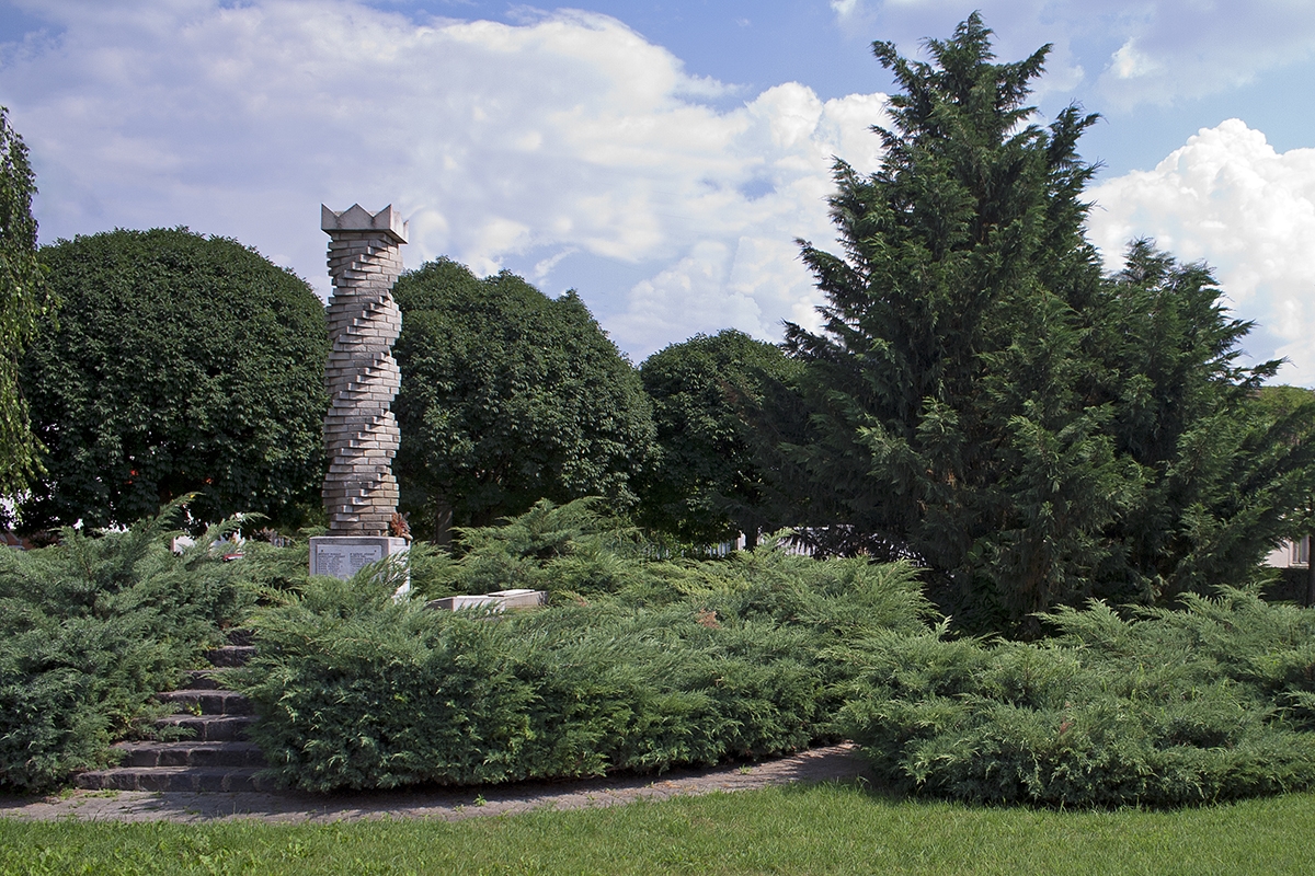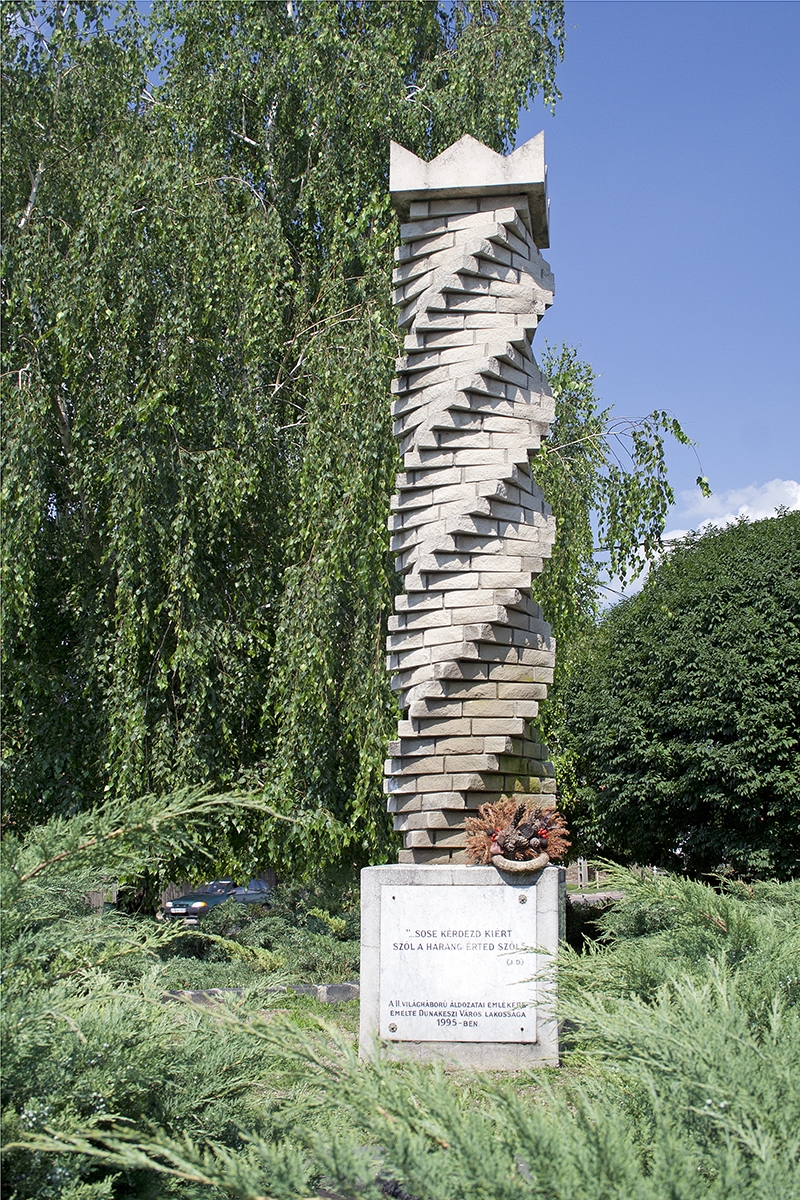 A Március 15. téren, nem messze a 48-as zászlórúdtól helyezkedik el Dunakeszi II. világháborús emlékműve, amelyet a világégés európai befejezésének ötvenedik évfordulóján, 1995. május 9-én avattak fel. Az emlékmű a háború dunakeszi áldozatainak állít emléket, ezt a talapzaton elhelyezett emléktábla is rögzíti: „A II. világháború áldozatai emlékére emelte Dunakeszi város lakossága 1995-ben”. Az emléktáblán olvasható még John Donne örökbecsű idézete: „…sose kérdezd kiért szól a harang: érted szól”. A talapzat további három oldalán alfabetikus sorrendben olvasható Dunakeszi és Alag háborús áldozatainak a névsora. A 118 felsorolt nevek között katonai és polgári áldozatokat is találunk. Maga az emlékmű, Bajza József alkotása. A tervező egy nonfiguratív megoldást választott az emlékmű tervezésénél, amely egy csavart, csigalépcső-szerű formát ad ki, amely a korona jellegű csúcsban végződik. Az egész emlékmű dinamikusan, felfelé törekszik, amelyben a korona a hősöknek szánt nyughelyet, a mennyei királyságot jelképezi, a kanyargós csigalépcső pedig azt a kacskaringós utat szimbolizálja, amelyet az elhunyt hősöknek be kellett járniuk. Az emlékműnél sem a második világháborút övező évfordulókon, sem pedig a Hősök napján nincsenek megemlékezések.