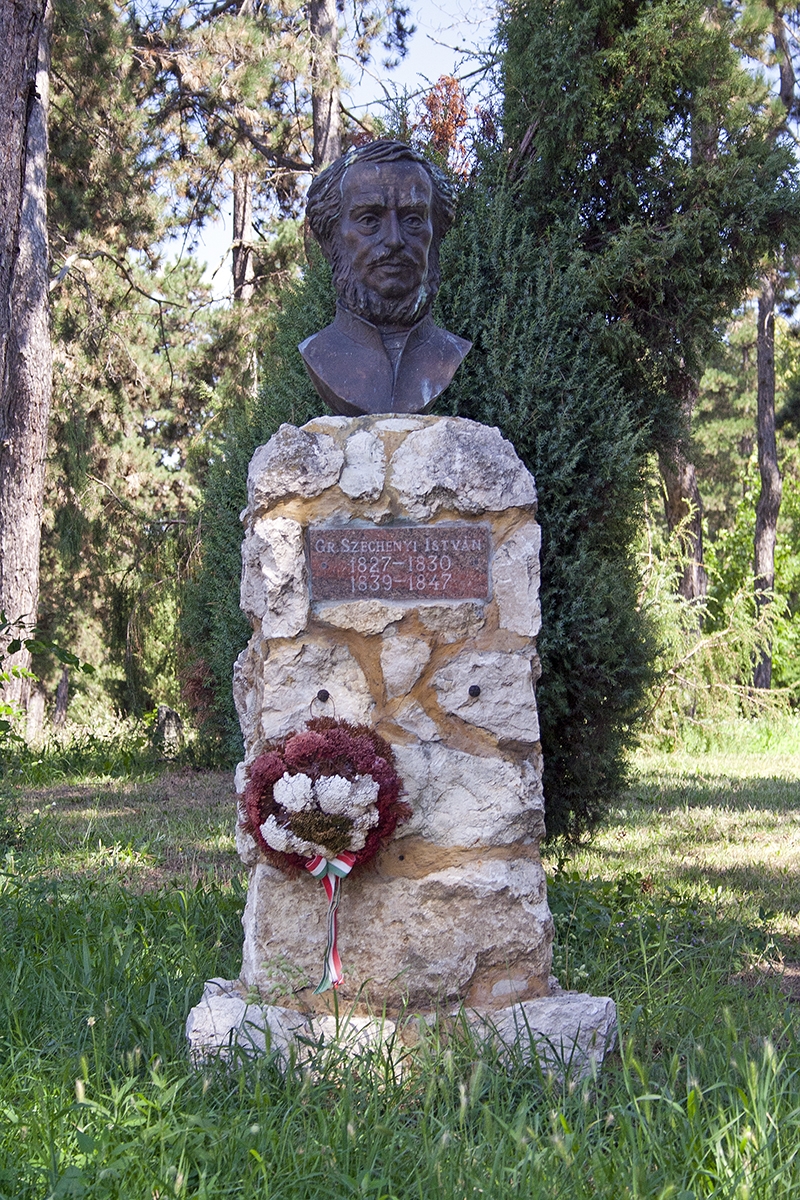 Az alagi tréningtelep parkjában, a főbejárat közelében találjuk a Magyar Lovaregylet alapítójának és első elnökének, gróf Széchenyi Istvánnak a mellszobrát. A legnagyobb magyarnak is nevezett Széchenyi István 1791-ben született Bécsben. Ifjúkorát Nagycenken és a császárvárosban töltötte. A reformkor egyik vezéregyéniségének sokoldalú életpályájának fontos epizódja a magyarországi lóversenyzés és lótenyésztés alapjainak a letétele. Angliai utazásai során ismerkedett meg a sportággal. A szigetországi minták átvételét szorgalmazva alapította meg 1827-ben a Magyar Lovaregyletet, amelynek első elnöke (1827-1830) volt. A lovaregylet vásárolta meg 1889-ben Alag-pusztát és hozta létre rajta lóversenypályáját, valamint tréningtelepét. Széchenyi bronzból készült mellszobra – amely egy terméskőből álló, másfél méter magas posztamensen áll – ezért került a tréningtelep parkjába.