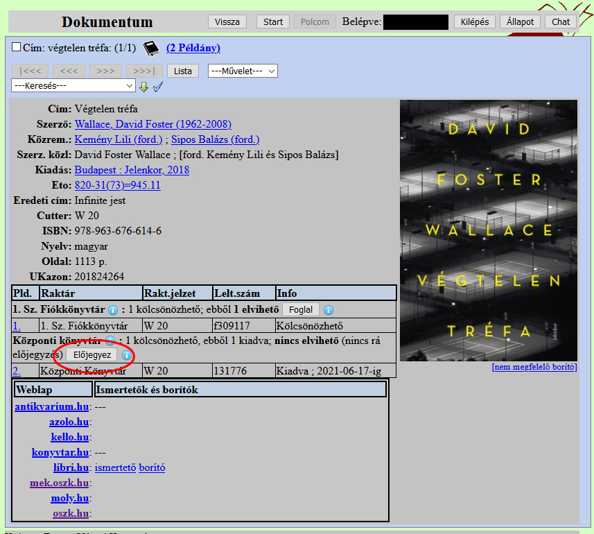 Ha a kötet éppen nem elérhető, előjegyzést lehet rá kérni az Előjegyez gombra kattintva.