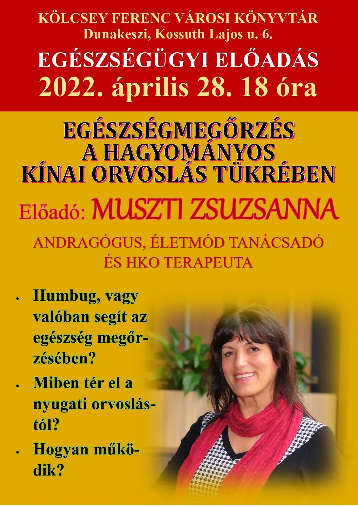 Muszti Zsuzsanna andragógus, HKO terapeuta egészségügyi előadása