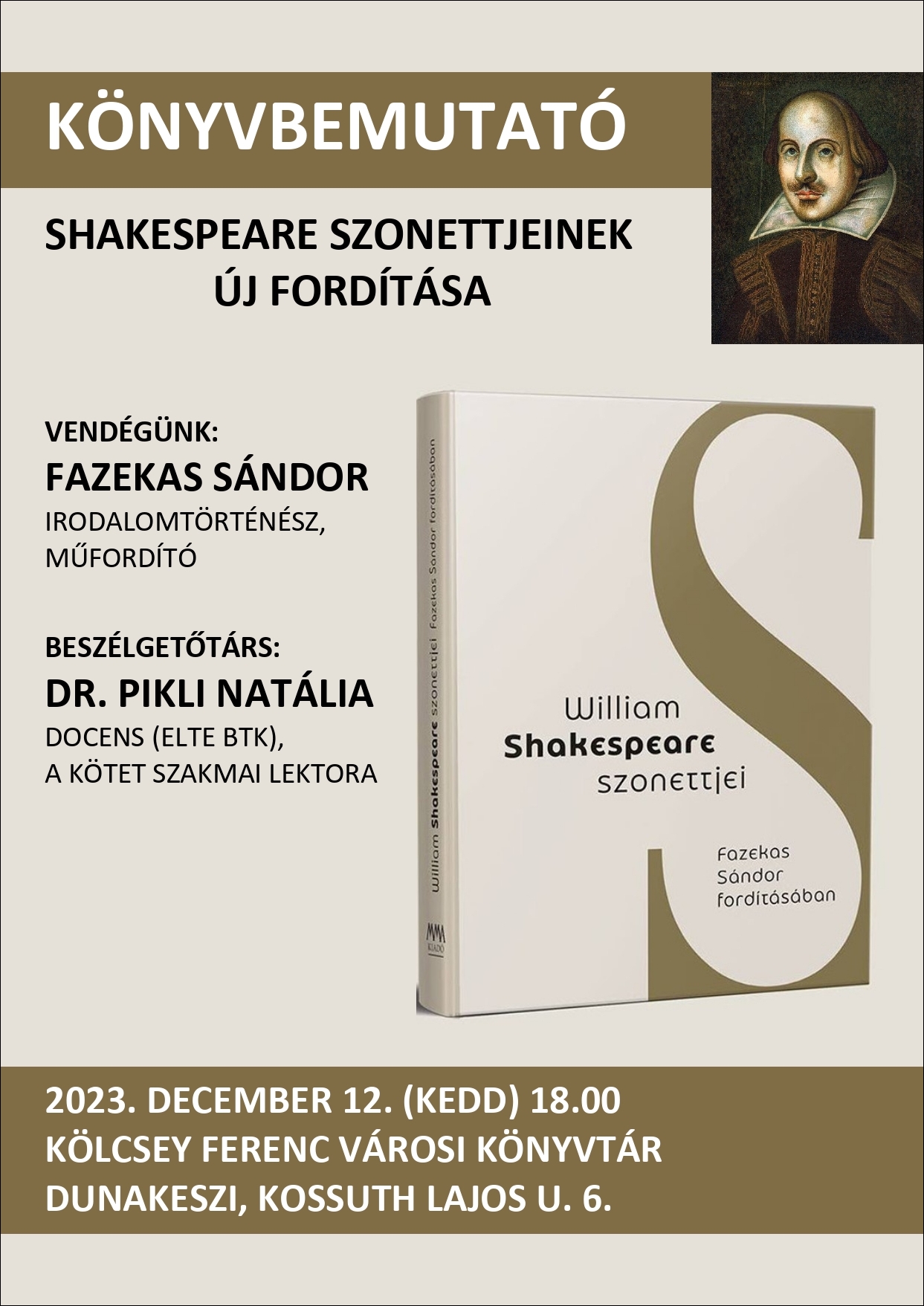 William Shakespeare szonettjei Fazekas Sándor fordításában. Könyvbemutató.