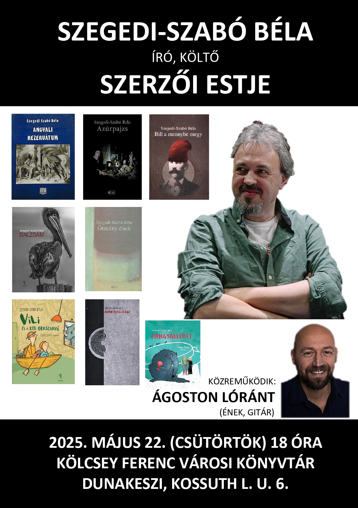 A szerzői esten közreműködik: Ágoston Lóránt (ének, gitár)