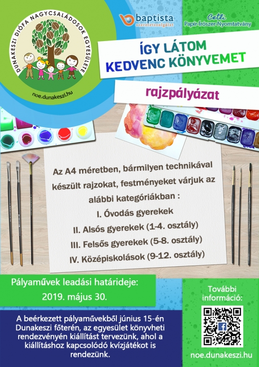A Dunakeszi Diófa Nagycsaládosok Egyesülete “Így látom kedvenc könyvemet” címmel rajzpályázatot hirdet 4 kategóriában.