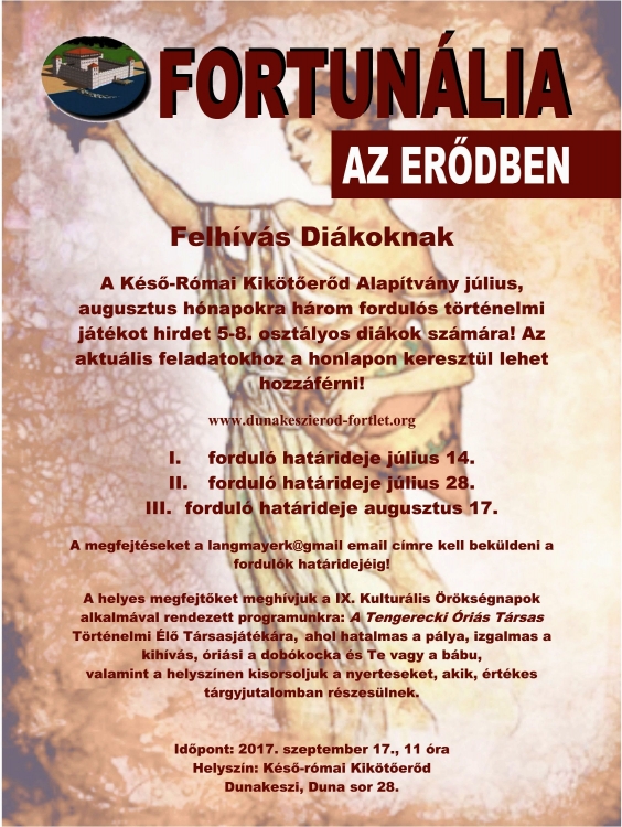 A Késő-Római Kikötőerőd Alapítvány történelmi játéka 5-8. osztályos diákok számára.