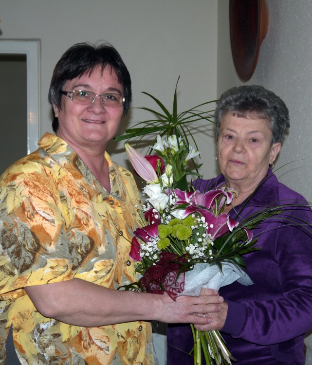 A Kölcsey Ferenc Városi Könyvtár dolgozói nevében virággal és ajándékkal köszöntöttük Oláhné Schwartz Emmát 80. születésnapja alkalmából. Emmi néni nyugdíjazása után még hosszú éveket töltött könyvtárunkban és az 1. Sz. Fiókkönyvtárban is, kiváló szakember volt, sokat tanultunk tőle.