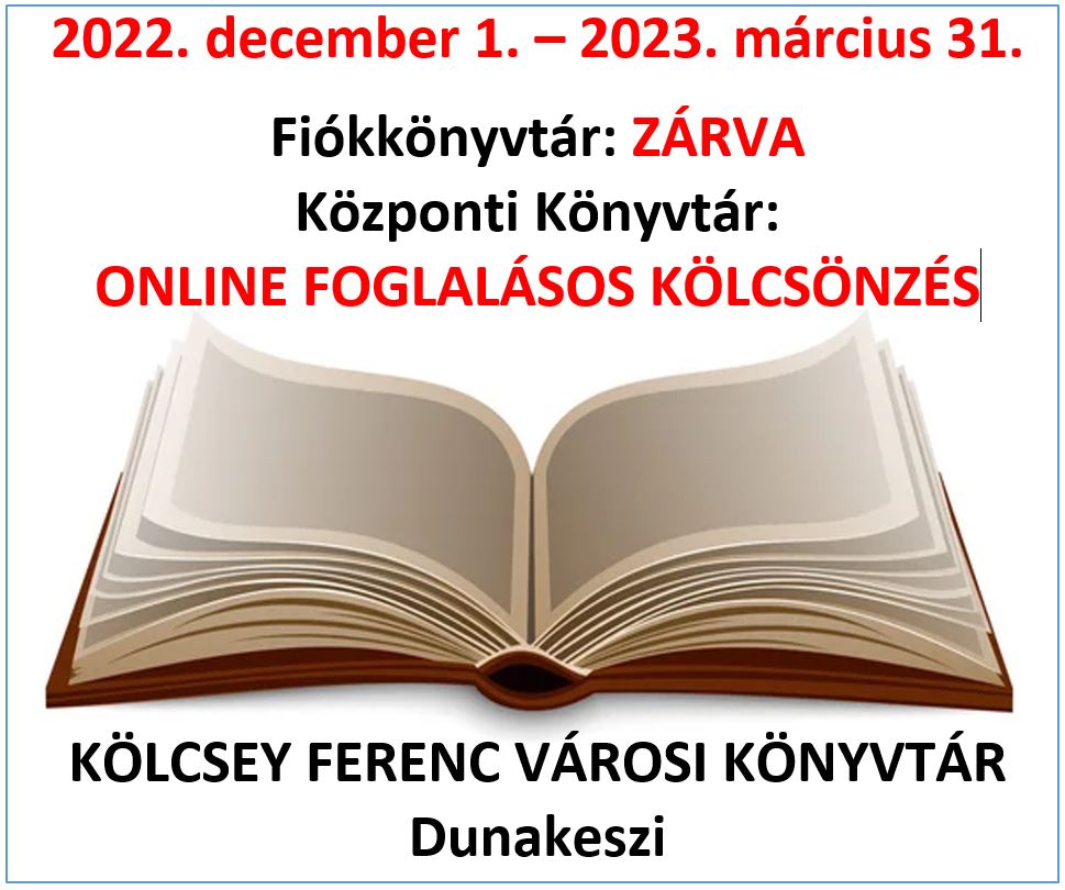 A Központi könyvtár (Kossuth Lajos u. 6.) a fent jelzett időszakban – a Covid világjárvány alatt már néhány héten keresztül bevezetett – (részben) online működésre tér át. A dokumentumokat az olvasók a könyvtár honlapján keresztül, telefonon és e-mailen tudják lefoglalni, majd a számukra összekészített könyvcsomagokat (a könyvtár nyitvatartási idejében H, K, CS, P: 10–18, szerda: 10–16) az intézmény bejárati ajtaján keresztül átvenni. A visszahozott könyvek átvételét kollégáink ugyancsak az ajtón keresztül végzik.