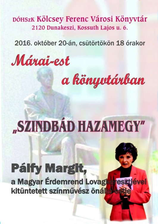 Pálfy Margit, a Magyar Érdemrend Lovagkeresztjével kitüntetett színművész Márai-estje