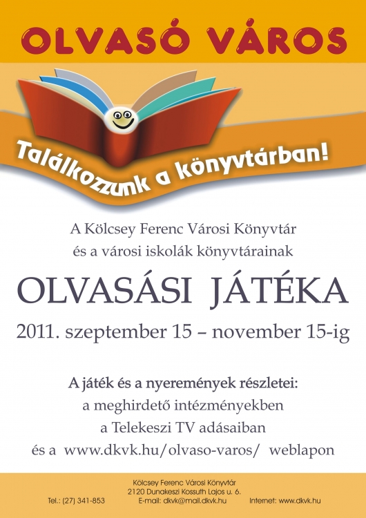 A Kölcsey Ferenc Városi Könyvtár 2011. évi olvasási programja november 15-én befejeződött.A díjak sorsolására november 21-én került sor, a díjkiosztó ünnepsége december 3-án 10 órakor lesz a Kölcsey Ferenc Városi Könyvtár olvasótermében, amelyre szeretettel várunk minden nyertest! A nyertesek névsora: