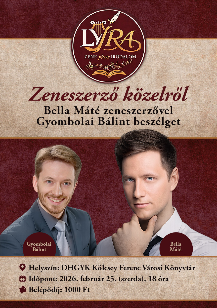A „Zene plusz irodalom” előadássorozat 2026-ban összesen öt alkalommal jelentkezik. Azok a látogatók, akik mind az öt eseményen részt vesznek, az év végén könyvutalványban részesülnek.